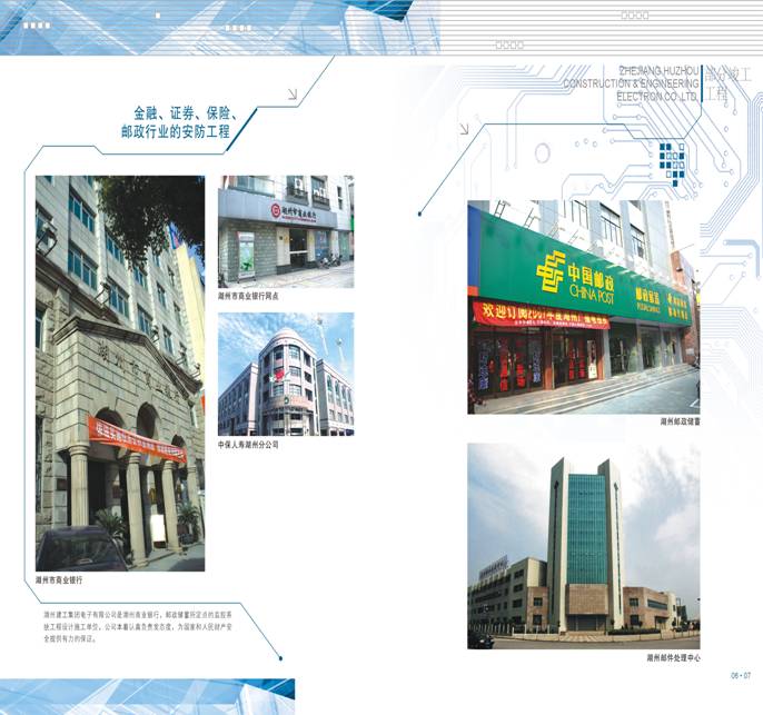 | 公司本著服務(wù)社會(huì)的企業(yè)宗旨,在方案擬定、工程施工管理、售后服務(wù)等方面制定了一整套制度,提供一流的先進(jìn)設(shè)備和完善的售后服務(wù)。近年來(lái)承接金融系統(tǒng)、廠礦企業(yè)、綜合性辦公大樓各種監(jiān)控、報(bào)警、綜合布線等工程,有浙北大廈酒店、商場(chǎng)、浙北超市、湖州國(guó)際大酒店、市國(guó)稅局新辦公大樓、市郵證局、市電信局、中央直屬糧庫(kù)及國(guó)際花園、愛都花園、富麗家園等安防及智能小區(qū)工程得到了建設(shè)單位、市公安局技防辦的一致好評(píng),體現(xiàn)了公司良好的安全技術(shù)防范專業(yè)設(shè)計(jì)、施工能力。為實(shí)現(xiàn)技術(shù)和服務(wù)上的保證,公司以湖州市建工集團(tuán)為依托,長(zhǎng)期與美國(guó)AD公司、英國(guó)DM公司、日本PANASONIC、AVENIR等公司的總代理商—陽(yáng)光(香港)企業(yè)有限公司深圳公司、美國(guó)洛泰克有限公司深圳公司、珠海太川智能樓宇公司、等力合作,公司在高起點(diǎn)上起步,引進(jìn)吸收消化國(guó)際先進(jìn)技術(shù),在所有本公司參與的工程均合格交付使用,其中公司所設(shè)計(jì)施工的湖州郵證局安防工程還被評(píng)為優(yōu)良工程。 |