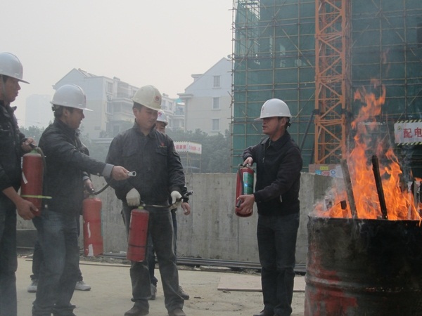 秋冬天干物燥,正是工地一年火災(zāi)多發(fā)、易發(fā)期。11月14日上午,集團(tuán)公司在湖州市職工服務(wù)中心工地舉行了一次火災(zāi)消防實(shí)戰(zhàn)演練。工程部分管安全的俞海江副部長就火災(zāi)類型、相關(guān)撲救方法、如何正確使用滅火器材和滅火時(shí)的注意事項(xiàng)等方面進(jìn)行了認(rèn)真講解,囑咐現(xiàn)場人員一定要時(shí)刻警惕和及時(shí)處理消防隱患,做到防患于未然,并進(jìn)行了現(xiàn)場操作演示。參加演練的工地施工人員在指導(dǎo)下迅速熟悉了滅火器的使用操作程序,并正確掌握了滅火方法,對供演練火源進(jìn)行了快速撲滅。施工人員通過親身體驗(yàn)?zāi)M消防演練,進(jìn)一步提高了施工現(xiàn)場的防火自救能力,增強(qiáng)了安全消防意識(shí),提升了操作消防器材的技能,強(qiáng)化了對突發(fā)火情的應(yīng)急處置能力。 俞海江(右一)在向施工人員做滅火示范。 |