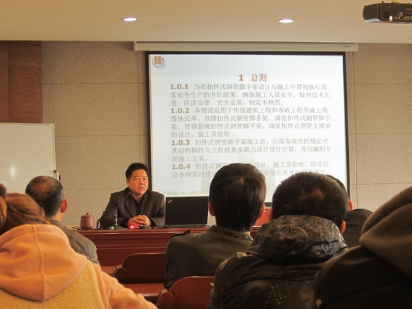 由總工程師室和工程部組織的第二期建筑工程技術(shù)講座11月25日上午在集團(tuán)公司四樓會(huì)議室舉行,主要內(nèi)容有《建筑施工扣件式鋼管腳手架安全技術(shù)規(guī)范》介紹、編制腳手架專(zhuān)項(xiàng)施工方案注意事項(xiàng)和要求、施工現(xiàn)場(chǎng)文明施工管理、《建設(shè)工程施工現(xiàn)場(chǎng)消防安全技術(shù)規(guī)范》介紹。 為確保工程質(zhì)量及施工人員的安全執(zhí)業(yè),住房和城鄉(xiāng)建設(shè)部于2011年1月28日批準(zhǔn)《建筑施工扣件式鋼管腳手架安全技術(shù)規(guī)范》為行業(yè)標(biāo)準(zhǔn),編號(hào)為JGJ130-2011,替代原來(lái)的JGJ130-2001標(biāo)準(zhǔn),并自2011年12月1日起實(shí)施。在扣件式鋼管腳手架設(shè)計(jì)與施工中貫徹執(zhí)行國(guó)家安全生產(chǎn)的方針政策,及時(shí)學(xué)習(xí)和正確理解《建筑施工扣件式鋼管腳手架安全技術(shù)規(guī)范》,成為此次講座的重點(diǎn)。規(guī)范修訂的背景、修訂的主要條文、修訂的依據(jù)及主要技術(shù)內(nèi)容,總工程師茅建坤都做了較為詳細(xì)的介紹,并對(duì)扣件式鋼管腳手架及模板支架設(shè)計(jì)計(jì)算進(jìn)行了解釋。在講座中,茅建坤強(qiáng)調(diào)了該規(guī)范中強(qiáng)制性條文必須嚴(yán)格執(zhí)行。茅建坤還詳細(xì)介紹了與原有的JGJ130-2001相比,該規(guī)范作的修訂和新增加的懸挑腳手架挑梁結(jié)構(gòu)及其錨固的構(gòu)造和計(jì)算;在材料的使用方面,取消了ø51×3.0鋼管,并且鋼管標(biāo)準(zhǔn)改為ø48.3×3.6,增加了頂撐的構(gòu)造和運(yùn)用要求。根據(jù)集團(tuán)公司的現(xiàn)狀,要求租賃公司應(yīng)盡快加緊按新標(biāo)準(zhǔn)配置鋼管和頂撐等構(gòu)配件。 總師室屠乙曾高級(jí)工程師對(duì)目前我公司在編制專(zhuān)項(xiàng)方案中存在的問(wèn)題,結(jié)合該新規(guī)范,對(duì)荷載計(jì)算特別是對(duì)新規(guī)范中基本風(fēng)壓、10年重現(xiàn)期、連墻件的約束軸向力、單雙排架荷載取值等做了詳細(xì)講解,對(duì)編制腳手架施工專(zhuān)項(xiàng)方案提出了具體要求。 工程部分管安全的俞海江副部長(zhǎng)對(duì)施工現(xiàn)場(chǎng)文明施工管理、施工現(xiàn)場(chǎng)圍墻、大門(mén)及門(mén)柱設(shè)置、一圖五牌、現(xiàn)場(chǎng)布置、二欄一報(bào)、辦公及臨時(shí)設(shè)施、現(xiàn)場(chǎng)環(huán)境衛(wèi)生等,根據(jù)集團(tuán)公司的有關(guān)規(guī)定提出了一些具體要求;還介紹了2011年8月1日實(shí)施的GB50720-2001《建筑工程施工現(xiàn)場(chǎng)消防安全技術(shù)規(guī)范》主要條款內(nèi)容,對(duì)集團(tuán)公司施工現(xiàn)場(chǎng)消防安全管理制度提出了相應(yīng)的措施。 集團(tuán)各基層公司、項(xiàng)目部編制、校核施工方案的技術(shù)人員、資料員、安全員、質(zhì)量員等30余人聆聽(tīng)了講座。