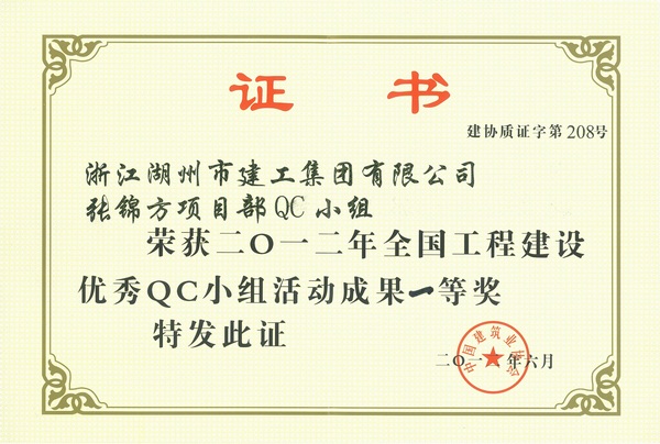 | 公司一項QC成果喜獲“2012年度全國工程建設優(yōu)秀QC小組活動成果”一等獎 |