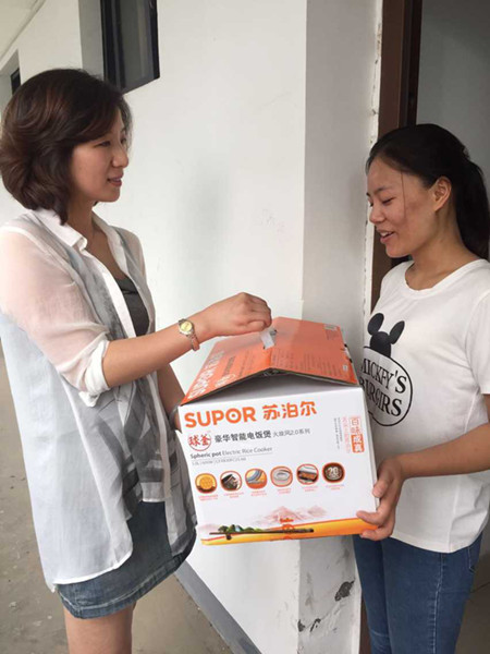 “一個(gè)小心愿,藏在我心間,愿那小雨,煩憂都洗遍……”黃梅時(shí)節(jié)家家雨,對(duì)于今年6月剛被招錄進(jìn)湖州建工財(cái)務(wù)公司的大學(xué)女畢業(yè)生丁納來說,公司有集體宿舍,中飯有食堂,再加上一群熱情的同事,好像沒有什么不滿意的。唯一的不便就是早晚餐食堂不開伙,由于公司基地遠(yuǎn)離市區(qū),要自己解決,而剛參加工作要添置各種東西,手忙腳亂的,還真有點(diǎn)小煩惱。小丁的煩惱被支部書記章霞看在眼里記在心里。正好,集團(tuán)公司黨委根據(jù)市、開發(fā)區(qū)兩級(jí)“兩新”組織工委的工作安排,于5月下旬起,開展為期一年的“六大專項(xiàng)行動(dòng)”,并以浙湖建司黨〔2015〕8號(hào)文件形式將實(shí)施意見下發(fā)至各支部。這些接地氣的行動(dòng)里,其中的一項(xiàng)就是“點(diǎn)亮微心愿”,這項(xiàng)活動(dòng)的目的就是為了進(jìn)一步擴(kuò)大“兩新”黨組織影響力,幫助兩新組織黨員職工解決實(shí)際問題。財(cái)務(wù)公司支部就把新職工小丁需要添置一臺(tái)電飯煲的微心愿征集、上報(bào)。6月17日,《湖州晚報(bào)》、湖州兩新組織黨建微信公眾平臺(tái)公布了征集到的微心愿,章霞看到后及時(shí)聯(lián)系認(rèn)領(lǐng)了小丁的心愿,購買了一臺(tái)嶄新的蘇泊爾智能電飯煲送到了小丁宿舍里。小丁感動(dòng)地連聲說“謝謝!謝謝!” 6月24日,在集團(tuán)公司黨委召開的“六項(xiàng)行動(dòng)”推進(jìn)會(huì)上,集團(tuán)公司黨建工作指導(dǎo)員施為建在聽取了各支部前一階段專項(xiàng)活動(dòng)開展情況匯報(bào)、布置下一步工作重點(diǎn)時(shí)說:微心愿要作為一項(xiàng)常態(tài)化的工作,時(shí)間上不僅限于“七一”、“十一”,對(duì)象上不限于在職職工、黨員,還可以擴(kuò)大到外來務(wù)工者層面面;心愿的內(nèi)容可以“實(shí)”,還可以是“虛”,比如能力的提升、培訓(xùn)的機(jī)會(huì)、學(xué)一樣技能等。各級(jí)黨組織及黨員要實(shí)實(shí)在在體民情、察民意、解民憂,密切組織與黨員關(guān)系、黨員與職工關(guān)系,凝心聚力為企業(yè)和諧發(fā)展而努力。