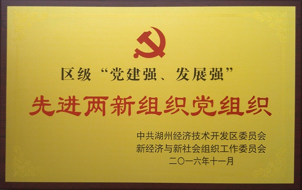2016年11月,集團(tuán)公司黨委被中共湖州經(jīng)濟(jì)技術(shù)區(qū)委員會新經(jīng)濟(jì)新社會組織工作委員會評為區(qū)級“黨建強(qiáng)、發(fā)展強(qiáng)”先進(jìn)兩新組織黨組織。