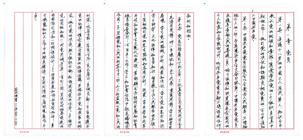 字跡有端正有秀氣,抄寫的黨章有長有短,但對于集團公司的黨員來說,靜下心來,重溫入黨誓詞,抄寫黨章是一次靈魂的洗禮,是一次思想的升華,通過手抄黨章活動的開展,加深了公司黨員對黨章的理解,不斷喚醒黨員意識,進一步增強黨性觀念,深化黨性修養(yǎng),時刻提醒自己在企業(yè)中發(fā)揮先鋒模范作用。
