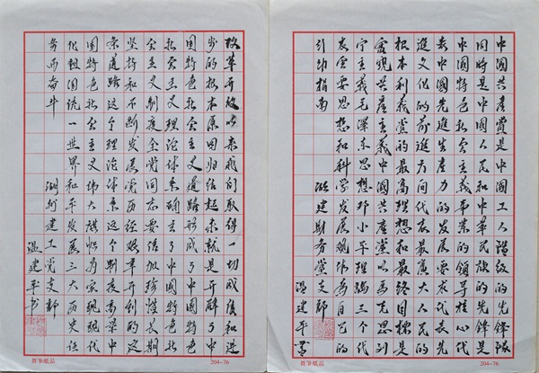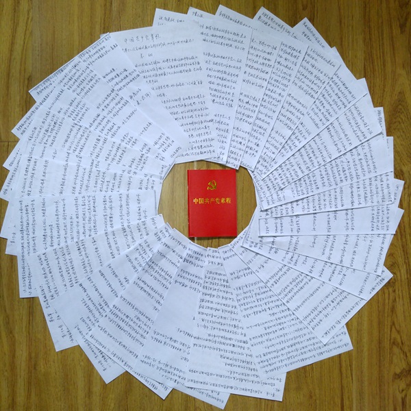 湖建裝飾公司支部的黨員邵高潔在雙休日把整本黨章抄寫了一遍,A4紙抄了26頁;市政公司支部的黨員李水根用行楷謄寫了黨章總綱;財務(wù)公司支部的黨員溫建平用硬筆書法重溫黨章內(nèi)容;湖建裝飾公司支部的黨員張順根找出孩子讀書時的作文簿,爬起了“方格紙”……共有21名黨員用這種樸素的形式對照黨章標準,牢記黨員身份。