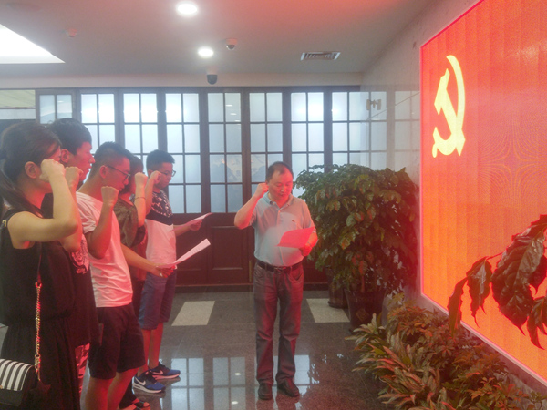 7月8日,集團(tuán)黨委組織三名新黨員和團(tuán)委委員赴上海中共一大會(huì)址進(jìn)行新黨員入黨宣誓和重溫入黨誓詞活動(dòng)!拔抑驹讣尤胫袊伯a(chǎn)黨,擁護(hù)黨的綱領(lǐng),遵守黨的章程,履行黨員義務(wù),執(zhí)行黨的決定,嚴(yán)守黨的紀(jì)律,保守黨的秘密,對(duì)黨忠誠,積極工作,為共產(chǎn)主義奮斗終身,隨時(shí)準(zhǔn)備為黨和人民犧牲一切,永不叛黨!泵鎸(duì)鮮紅的黨旗,新黨員高舉右拳,莊嚴(yán)地對(duì)黨許下誓言。集團(tuán)公司黨委副書記王宇清勉勵(lì)新黨員要牢記黨的宗旨,明確黨員權(quán)力,履行黨員義務(wù),時(shí)時(shí)處處以一名合格黨員的標(biāo)準(zhǔn)嚴(yán)格要求自己,不斷開拓創(chuàng)新,積極進(jìn)取,努力提升自身政治、文化素質(zhì),在不同的崗位上,充分發(fā)揮黨員的先鋒模范作用,以優(yōu)異的成績喜迎黨的“十九”大勝利召開。