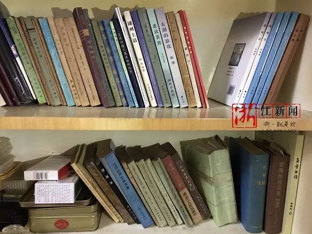 老人家中書櫥里擺滿了收集方言時所需查閱的書籍字典