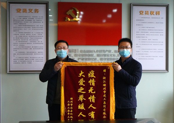3月10日,湖州市住房和城鄉(xiāng)建設(shè)局副局長金寧等領(lǐng)導(dǎo)一行蒞臨集團公司,代表市建設(shè)行業(yè)行政主管部門對集團公司履行企業(yè)社會責(zé)任、捐款助力抗疫表示感謝,并送來錦旗,集團公司領(lǐng)導(dǎo)徐國棟、張亞立、肖豐強等參加。