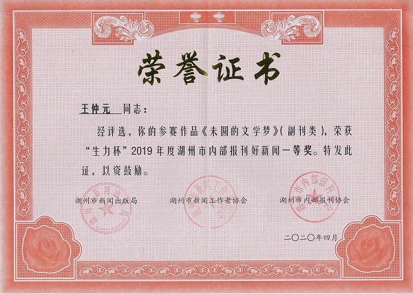 湖州市內(nèi)部報(bào)刊協(xié)會(huì)2019年年會(huì)暨“生力杯”2019年全市內(nèi)部報(bào)刊好新聞?lì)C獎(jiǎng)大會(huì)5月19日在美欣達(dá)集團(tuán)舉行。會(huì)上,周順榮會(huì)長(zhǎng)兼秘書長(zhǎng)做了“2019年度湖州市內(nèi)部報(bào)刊協(xié)會(huì)工作總結(jié)和2020年度工作思路”的報(bào)告,浙江生力機(jī)械科技有限公司領(lǐng)導(dǎo)鄭建華致賀詞,中共湖州市委宣傳部副部長(zhǎng)龔貴庭到會(huì)作指示。會(huì)上,表彰了2019年度全市內(nèi)部報(bào)刊好新聞評(píng)比結(jié)果,由我報(bào)選送的王仲元的《未圓的文學(xué)夢(mèng)》獲副刊類作品一等獎(jiǎng),《“花”漾年華,“妹”力四射》《集團(tuán)公司組織參觀郎部抗日紀(jì)念館》分獲通訊類二等獎(jiǎng)、消息類三等獎(jiǎng)。會(huì)上,通報(bào)了2019年“金秋好景致”第十五屆攝影比賽成績(jī),邵培新拍攝的《希望》獲三等獎(jiǎng)。