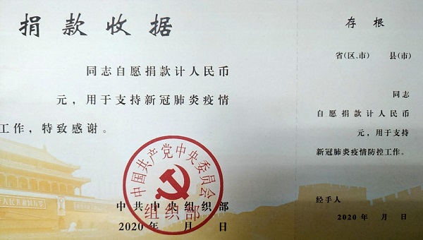 4月29日,集團(tuán)公司131名自愿捐款支持新冠疫情防控的黨員收到一份特殊的“禮物”——印有精確編號(hào)和中國(guó)共產(chǎn)黨中央委員會(huì)組織部紅色印章的“捐款收據(jù)”,感受到來(lái)自中組部的溫暖與關(guān)懷。