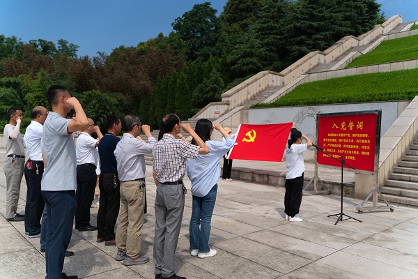 仲夏的湖州城南碧浪湖畔峴山,青山蒼翠,綠意盎然,“我志愿加入中國共產(chǎn)黨,擁護黨的綱領(lǐng),遵守黨的章程,履行黨員義務(wù)……”黨員們面對鮮紅的黨旗,舉起右拳,重溫鏗鏘的入黨誓詞,激情澎湃,紅心向黨。6月24日,集團公司機關(guān)黨支部“學(xué)黨史緬懷革命先烈、迎建黨傳承革命精神”七一主題黨日活動在湖州市革命烈士陵園“革命烈士永垂不朽”紀念碑前進行。