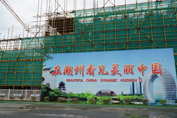 來(lái)到湖州第一中學(xué)改擴(kuò)建工程的建設(shè)現(xiàn)場(chǎng),迎面一個(gè)造型別致的長(zhǎng)廊,周圍鋪植了綠油油的草坪,滿目清新,可以起到降塵的作用,項(xiàng)目負(fù)責(zé)人說,這些都是“綠色工地”建設(shè)的一部分。