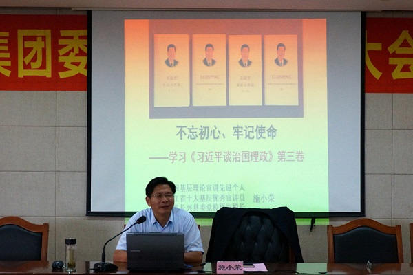 長興縣委黨校副校長施小榮同志為全體與會人員上了一堂題為《不忘初心 牢記使命——學(xué)習(xí)〈習(xí)近平談治國理政綱要〉(第三卷)》專題黨課,為何學(xué)、學(xué)什么、如何學(xué)的步步深入講解,使與會黨員深受教育和啟發(fā)。