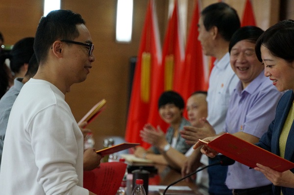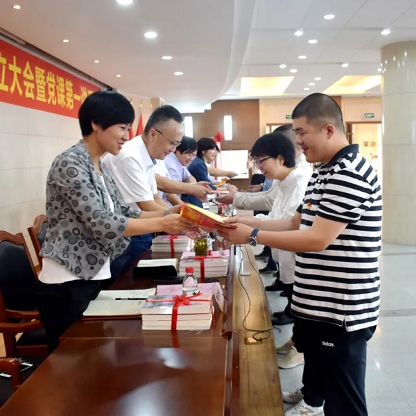 在新成立的黨校教室里,市、區(qū)、街道和集團(tuán)公司領(lǐng)導(dǎo)為9月份入黨的黨員發(fā)政治生日賀卡、贈送學(xué)習(xí)書籍,過一個特別有意義的政治生日。