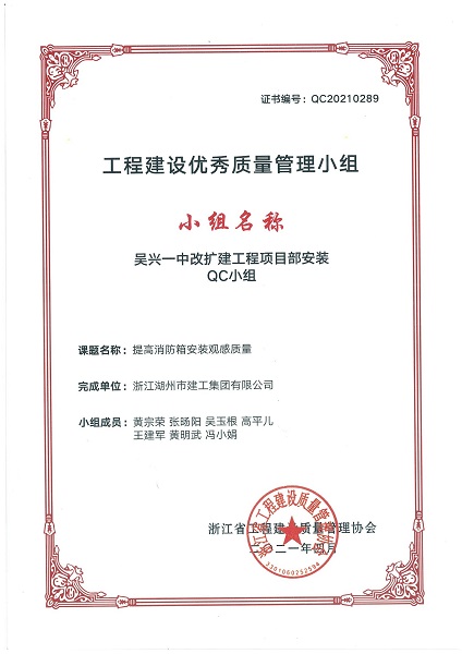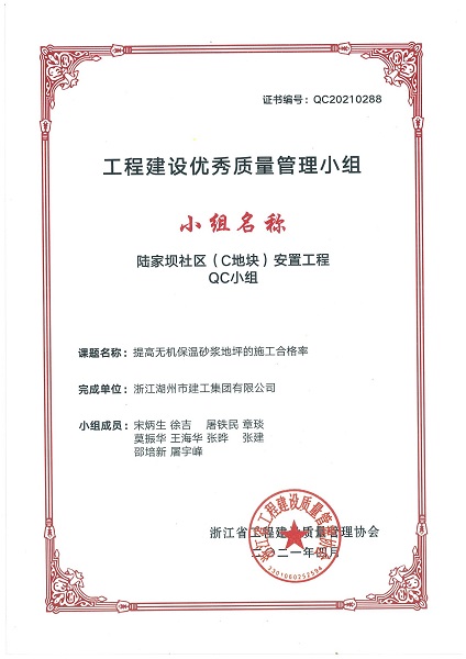 近日,從浙江省工程質(zhì)量管理協(xié)會舉辦的2021年浙江省工程建設(shè)優(yōu)秀質(zhì)量管理小組成果發(fā)布會傳來喜訊,集團公司陸家壩(C地塊)安置工程QC小組(課題名稱:提高無機保溫砂漿地坪的施工合格率)、吳興一中改擴建工程項目部QC小組(課題名稱:提高圓柱混凝土施工質(zhì)量)、吳興一中改擴建工程項目部安裝QC小組(課題名稱:提高消防箱安裝觀感質(zhì)量)等三個QC小組被評為“工程建設(shè)優(yōu)秀質(zhì)量管理小組。