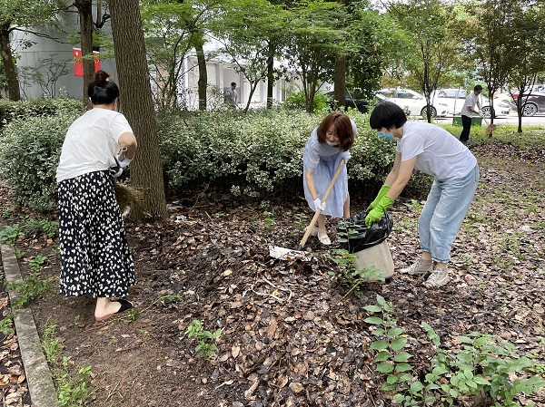 7月2日下午,雖然下著毛毛雨,財務公司支部黨員孫小華、章霞、朱紅雅、沈水芳、沈輝麗、施娟娟、錢國華、羅紅燕、韋珍等同志根據(jù)手頭的工作,陸續(xù)來到了清理點,財務公司團員汪嘉杰也參與了進來。鉗子、手套、掃把、鐵鍬等工具實現(xiàn)已備好。本次清理活動雖然看起來范圍并不大,但是十幾年累積的樹葉、枯枝,吹落的包裝袋、外賣盒等各種垃圾著實不少。兩個多小時勞動下來,參加清理的同志無不汗流浹背,同時忍受著蚊蟲的叮咬,粗略估計裝了有四十袋左右。力量有大小,奉獻無差別,這次財務支部黨員盡己所能美化了公司一角,以勞動淬煉心靈,繼續(xù)推動黨史學習教育深入人心,讓黨史學習教育真正轉化為干實事的動力。