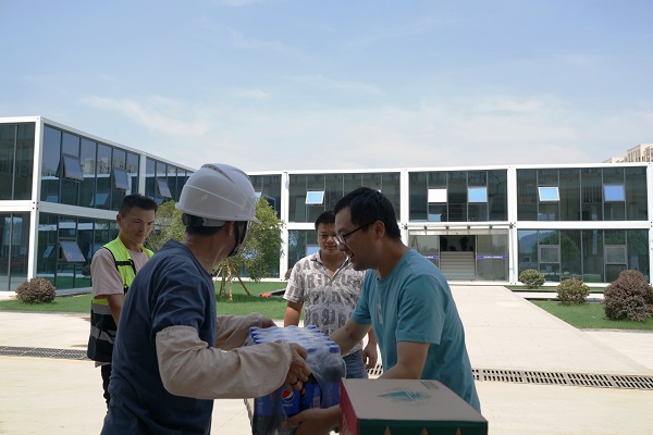 勞動擦亮奮斗底色,堅守彰顯敬業(yè)風(fēng)采。自入伏以來,公司一線職工堅守在項目施工和生產(chǎn)崗位,揮灑汗水,辛勤工作。7月14日,集團公司工會、行政人員帶上防暑降溫慰問用品,走訪施工、生產(chǎn)一線職工,送上一份清涼,捎去一份問候。