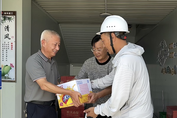 隨著湖州進入“三伏天”,近40℃的高溫悶熱天氣給奮戰(zhàn)在一線施工現(xiàn)場的集團公司廣大員工帶來了極大的挑戰(zhàn)。為確保施工人員的身心健康,以及施工現(xiàn)場的安全生產(chǎn),7月23至24日,集團公司總裁肖豐強、副總裁沈偉惠、工程部副部長施佩峰、集團工會副主席凌云等一行專程趕赴集團公司施工的湖州南潯區(qū)沈莊漾小學(xué)建設(shè)項目、康山北單元KS-01-02-13A號地塊建設(shè)項目、德清同欣建設(shè)發(fā)展有限公司2-09車間2-18車間、楊家埠南單元XSS-02-03-08B地塊建設(shè)項目等施工現(xiàn)場,及商品混凝土公司生產(chǎn)基地,為高溫期間仍堅守一線的廣大員工送上清涼,“夏”定決心,為能按期安全完成施工生產(chǎn)任務(wù)加油鼓勁。