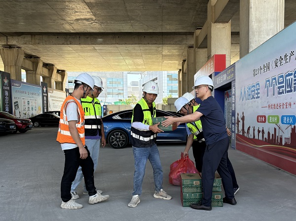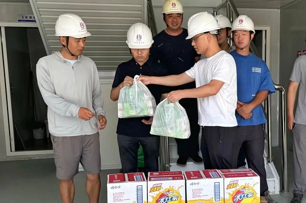 天氣熱辣滾燙。每到一地,集團公司領(lǐng)導(dǎo)了解現(xiàn)場施工進度情況,出“涼”策、開“涼”方,叮囑項目部管理人員調(diào)整高溫作息時間,采取“做兩頭休中間”錯時施工,避免員工疲勞和帶病作業(yè),防止因高溫天氣引發(fā)的員工中暑及各類安全事故。每去一處,慰問組一行為施工(生產(chǎn))人員發(fā)放了藿香正氣水、風(fēng)油精、人丹、清涼油等防暑藥品及毛巾、肥皂、礦泉水、冰紅茶等防暑降溫用品,對員工們在高溫天氣下的辛苦付出表達了誠摯的謝意,并叮囑高溫作業(yè)須繃緊安全生產(chǎn)這根弦,確保平穩(wěn)度夏。